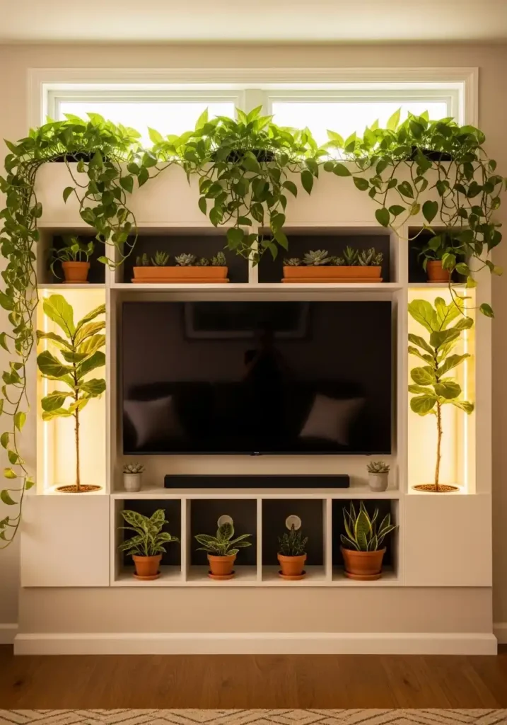 20. The TV Wall With Integrated Plants: Living Greenery Around Your Screen