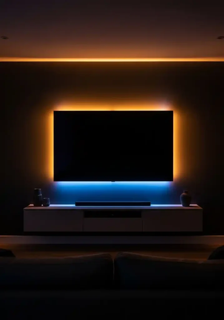 The color and brightness of LED bias lighting sets the entire atmospheric tone of the living room during television viewing — and modern smart LED bias systems that automatically sync their color and brightness to the content being displayed on screen, extending the visual atmosphere of the movie or show onto the wall behind and around the television, create the single most impressive and most completely immersive home entertainment atmosphere available at any residential budget! Warm amber bias lighting suits relaxed evening viewing and creates the coziest, most welcoming TV wall atmosphere. Color-synced bias lighting for movie nights creates a genuinely extraordinary cinematic immersion. Simple neutral white bias lighting reduces eye strain and enhances perceived picture clarity.