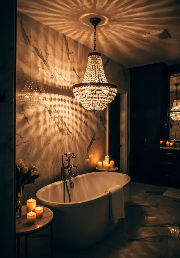 10. Chandelier or Statement Pendant Light Above the Bathtub