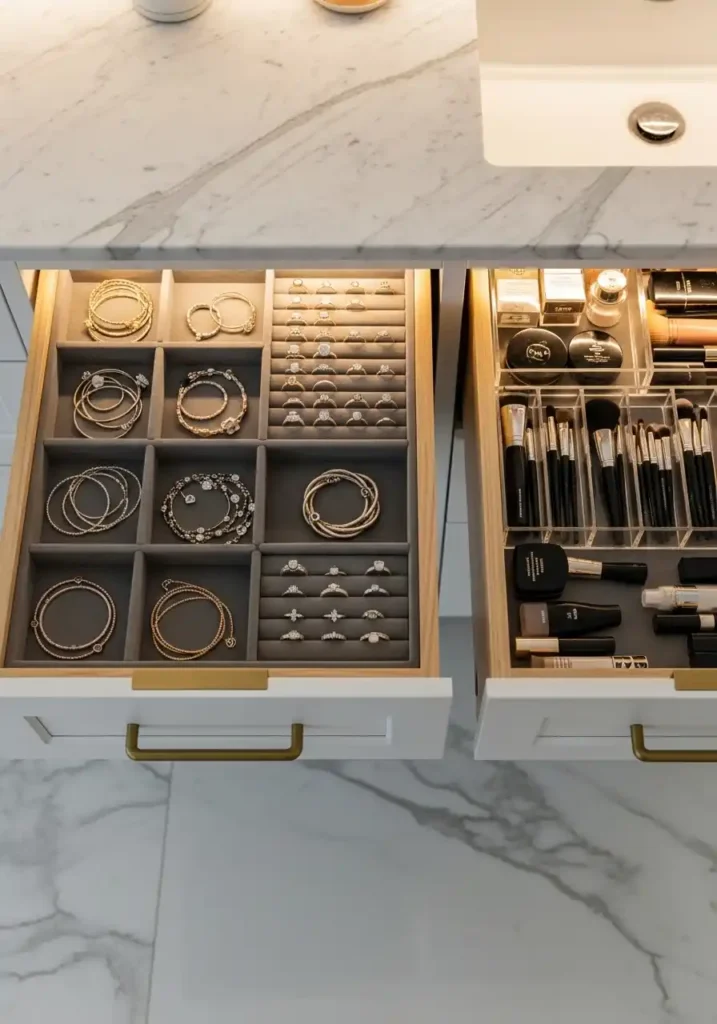 23. Custom Vanity with Integrated Jewelry and Cosmetic Storage