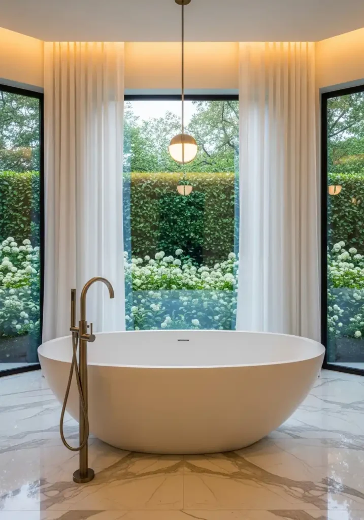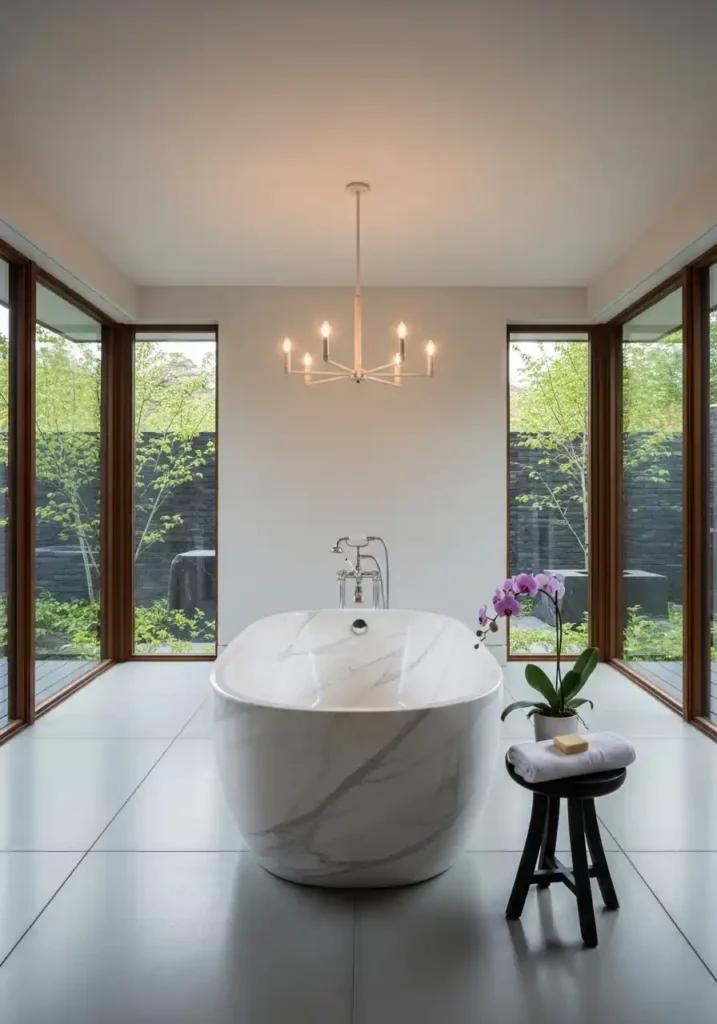 1. Freestanding Soaking Tub Centered as a Sculptural Focal Point