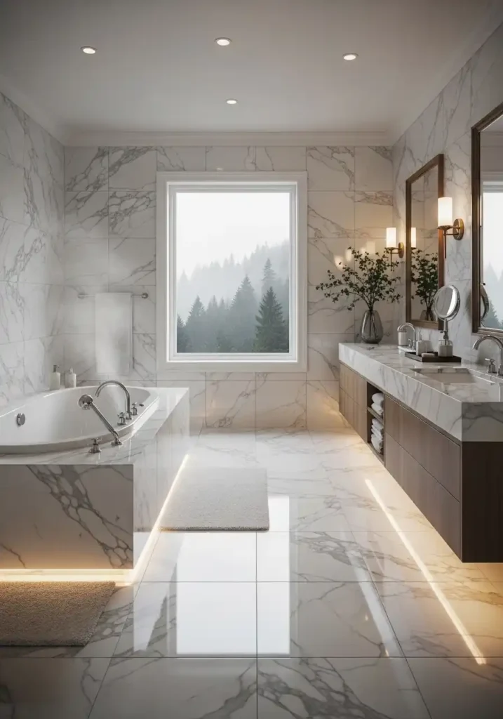 Cold bathroom floors are the enemy of spa-like living — that jarring shock of cold marble or stone underfoot on a winter morning is the single fastest way to break whatever sense of warmth and comfort your beautiful bathroom design has created. Radiant floor heating installed beneath marble tile solves this completely and permanently, delivering a sensory luxury that is felt rather than seen and appreciated with every single barefoot step you take in your bathroom every morning of every year for as long as you live in your home.