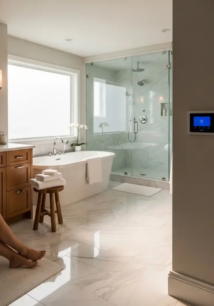 The combination of honed marble tile — with its naturally cool color palette and silky matte surface — and radiant warmth emanating from beneath creates a sensory paradox that is deeply pleasurable: the visual coolness of white marble with the physical warmth of a heated surface. It is one of those comfort details that luxury homeowners who have it consistently describe as impossible to live without once experienced. The investment is made once during the construction or renovation phase and delivers a daily return of genuine physical pleasure that no decorative element, however beautiful, can replicate.