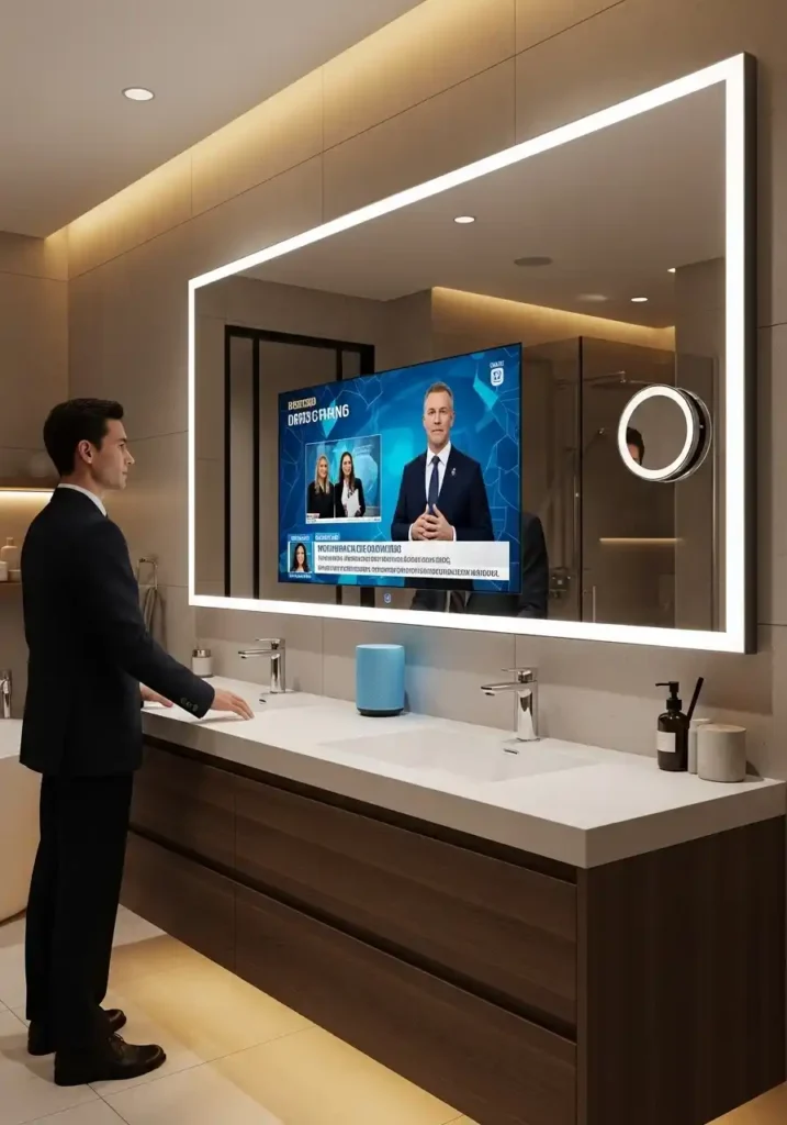 21. Smart Bathroom Technology — Mirror TV and Voice Control