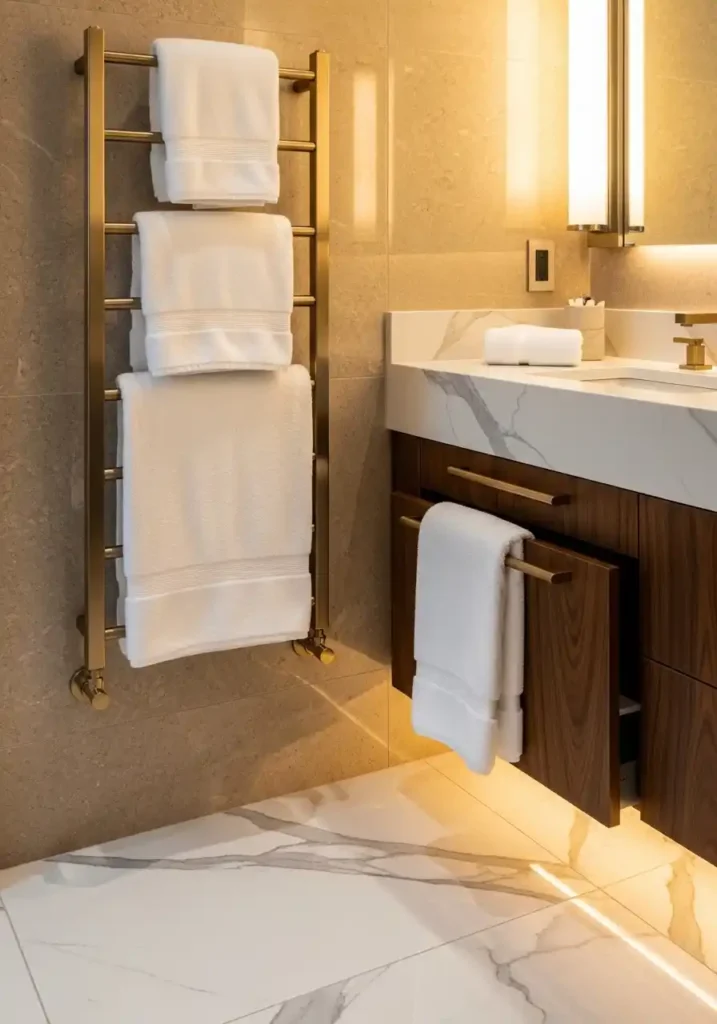 There is a specific pleasure in wrapping yourself in a warm towel fresh from a heated rail that is so simple, so accessible, and so profoundly comforting that it ranks among the most appreciated luxury bathroom features of any that exist. A well-designed heated towel rail — properly sized for the towels you actually use, positioned conveniently beside the shower or bathtub, and finished in a metal that coordinates with your other bathroom hardware — transforms the act of drying off from a mundane moment into a genuinely lovely one that sets a warm, comfortable tone for everything that follows.