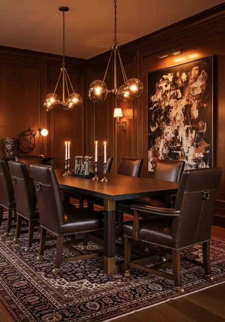 8. The Bronze and Leather Luxury Dining Room: Masculine Opulence of Genuine Authority