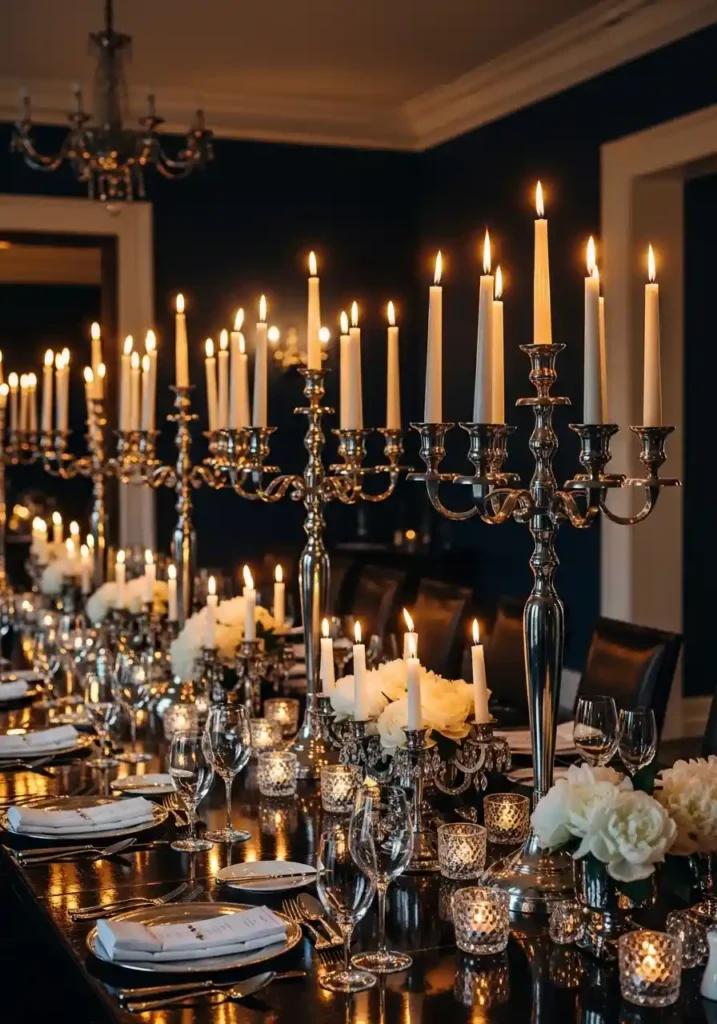 The silver candelabra is the most classically magnificent and most formally appropriate candlelight source for a luxury formal dining table — tall, multi-armed sterling or silver-plated candelabras bearing four, five, or more cream or ivory tapers each creating the most impressive and most historically resonant formal table candlelight of genuine silver luxury! Multiple candelabras at intervals down the full length of the formal table create a warm river of amber light of extraordinary beauty. Individual crystal votives at each place setting create intimate personal pools of warm candlelight for each specific diner. Together these candle sources create the most completely beautiful and most genuinely magical luxury dining table available.