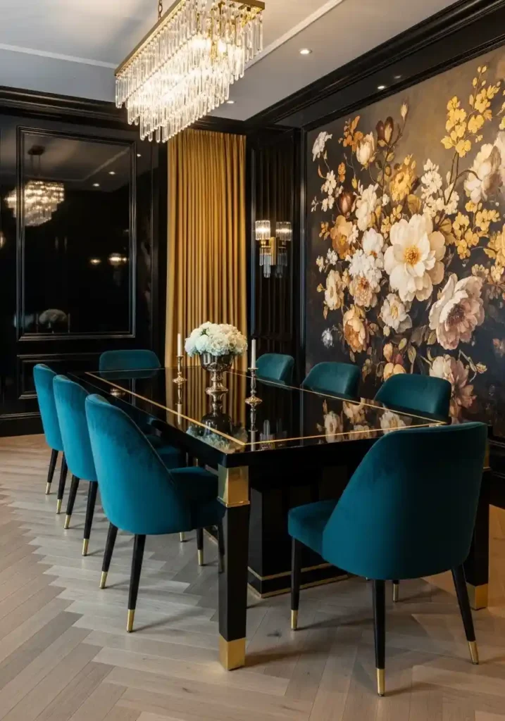 2. The Dark Lacquer Luxury Dining Room: Opulent Depth and Genuine Dramatic Magnificence