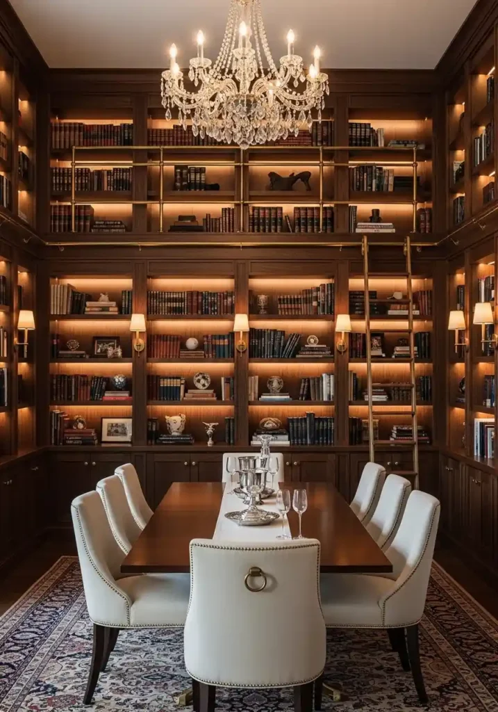 10. The Library Luxury Dining Room: Where Intellectual Richness Meets Formal Elegance