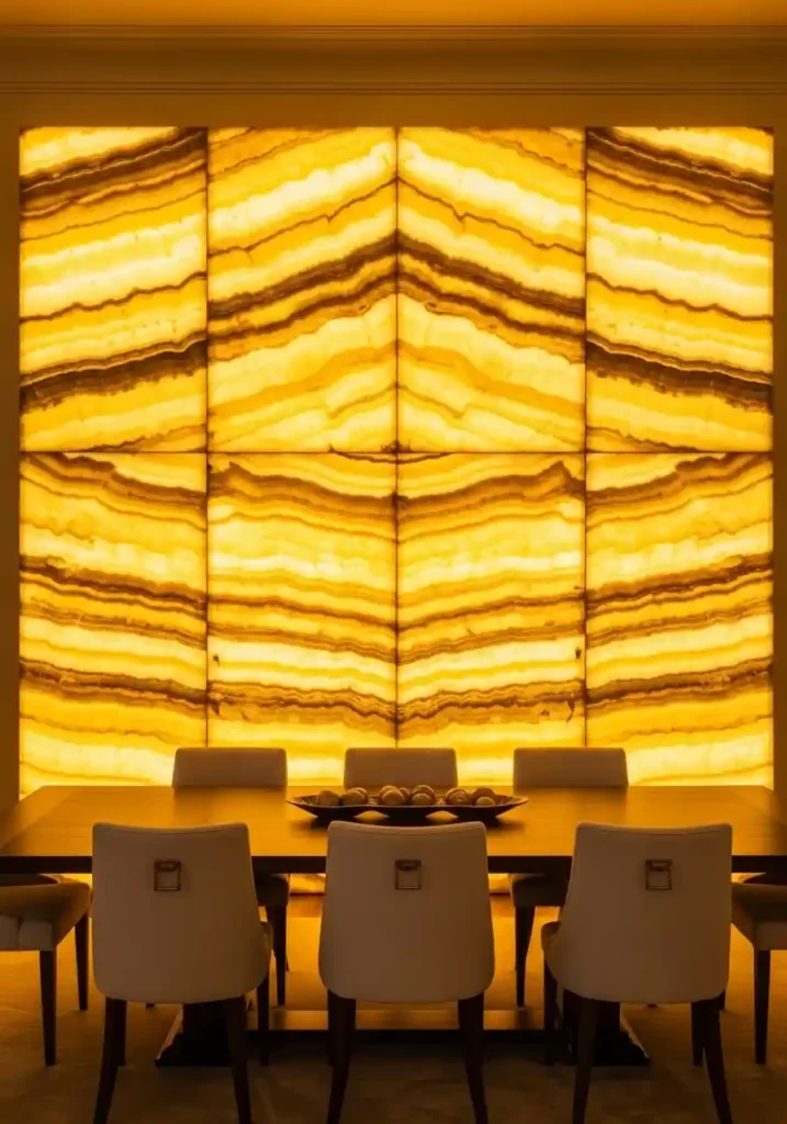 21. The Onyx Feature Wall Luxury Dining Room: Geological Rarities Behind the Table