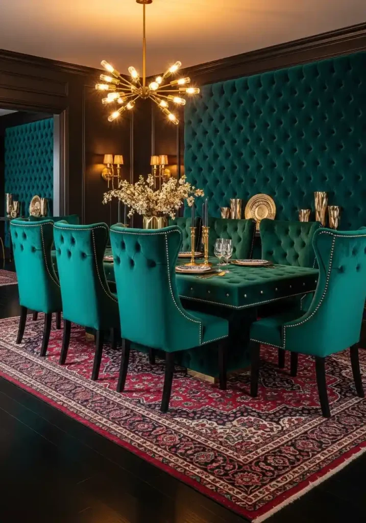 13. The Tufted Velvet Luxury Dining Room: Sensuous Richness at Every Surface