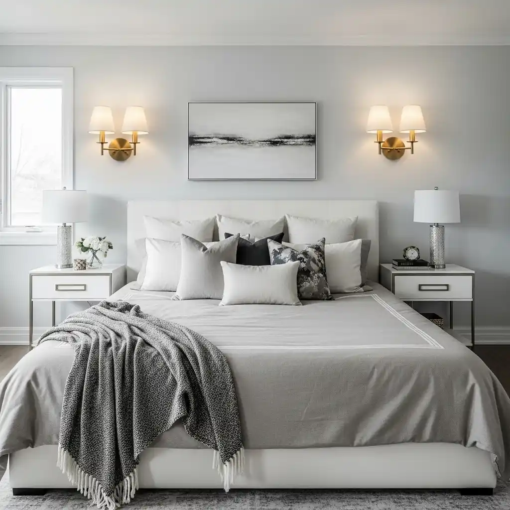 Position sconces symmetrically for balance and elegance. Dimmable options allow adjustable ambiance. This lighting choice elevates the bedroom while maintaining a clean, uncluttered look ideal for luxury decor inspiration.