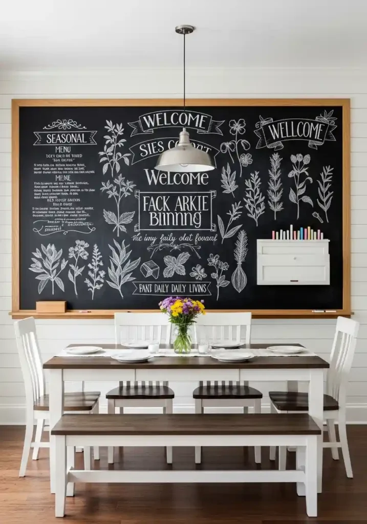 20. The Farmhouse Dining Room With Chalkboard Wall: Functional Art With Daily Charm