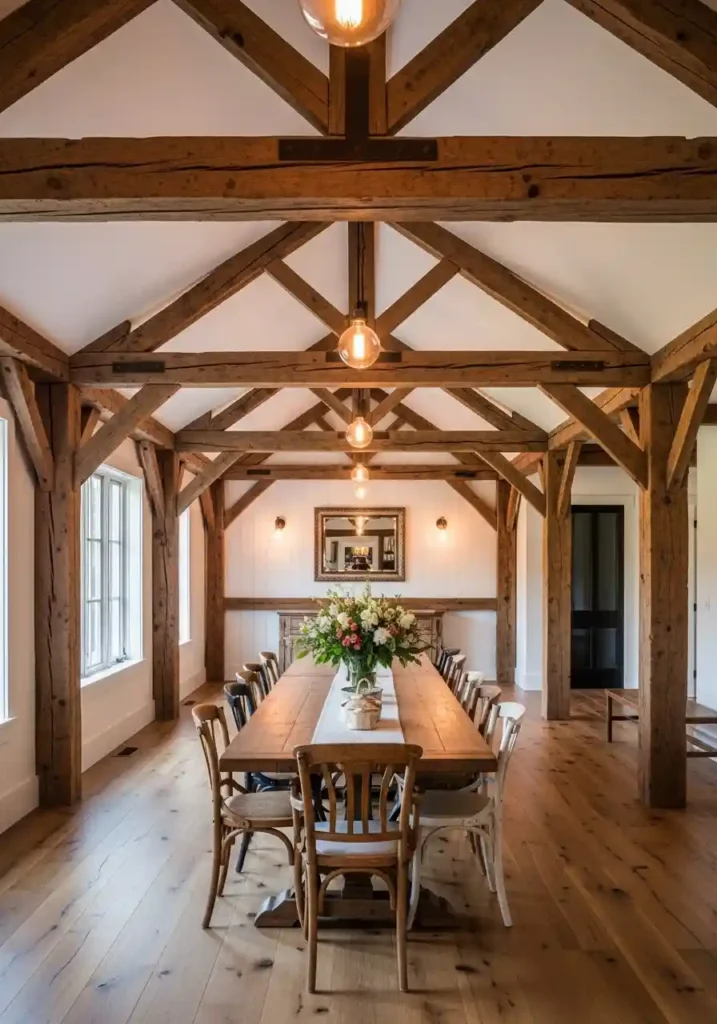 12. The Farmhouse Dining Room With Exposed Beams: Rustic Architecture Overhead