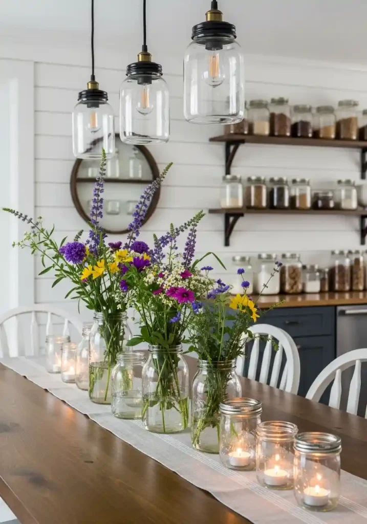 10. The Farmhouse Dining Room With Mason Jar Decor: Humble Beauty at Its Best