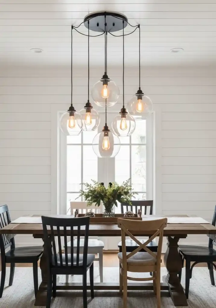 15. The Farmhouse Dining Room With Pendant Cluster: Modern Drama Above the Table