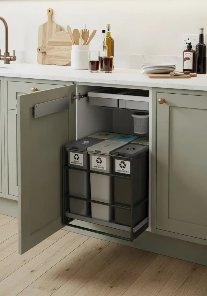 A smart waste management module with four separated compartments is the modular kitchen component that most directly and most permanently removes the kitchen’s most visually unappealing daily functional challenge from the kitchen’s visible environment — because properly sorting household waste at the point of disposal into general waste, glass, recyclables, and compostable food waste is both an environmental responsibility of genuine importance and a daily domestic organizational challenge that most kitchen configurations accommodate inadequately with poorly positioned, poorly organized, or insufficient waste separation systems. The dedicated waste module resolves this challenge with complete, beautiful, permanent organizational intelligence.