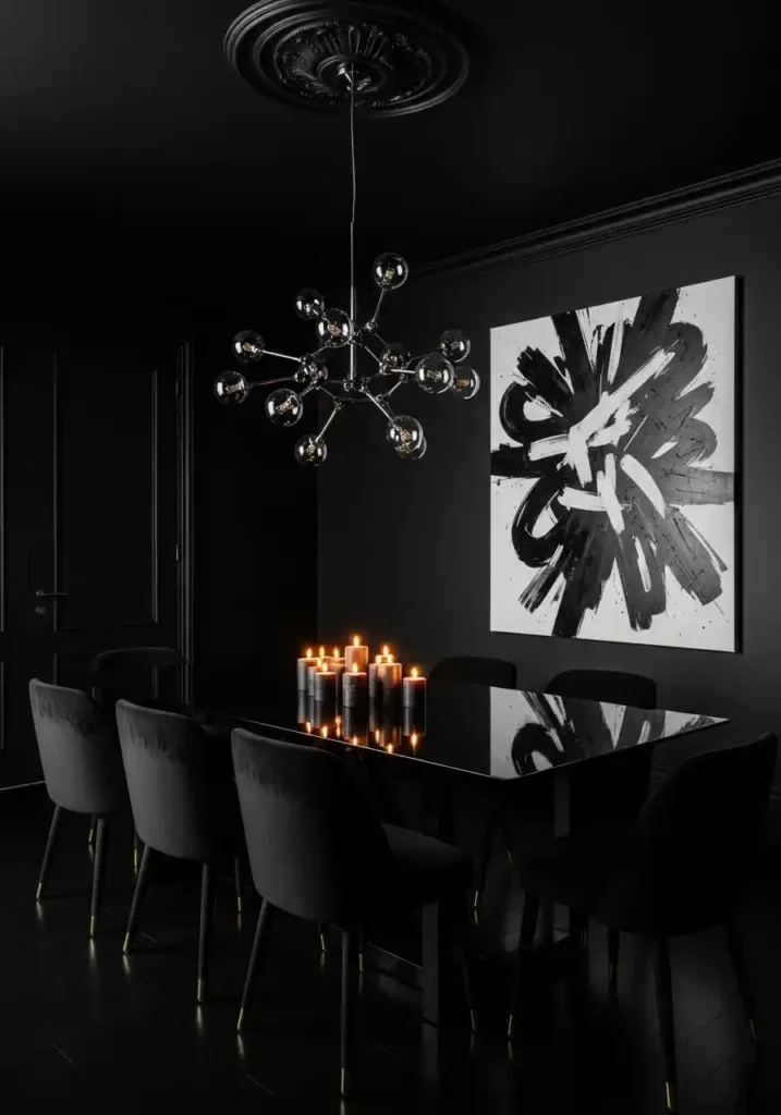 4. All-Black Dining Room for Maximum Drama