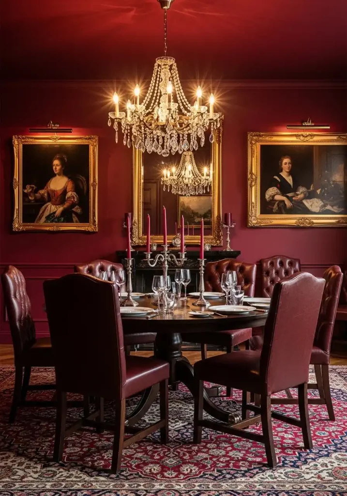 5. Burgundy Wine Red Dining Room for Rich Warmth