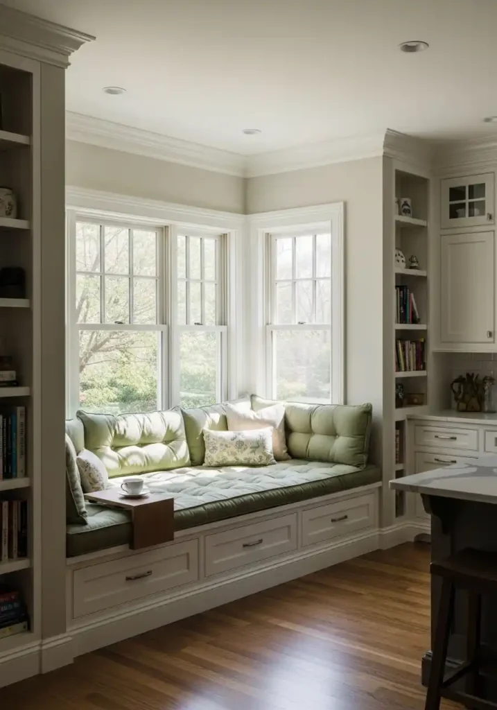 7. The Open Kitchen with a Built-In Window Seat for Intimate Corners