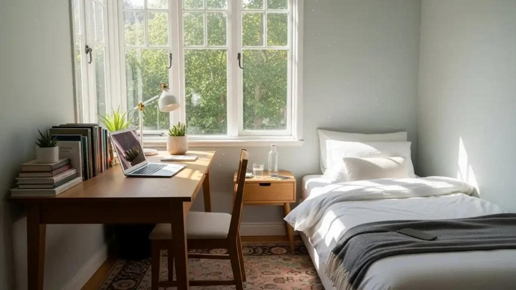 A functional layout focused on essentials prevents clutter in small bedrooms. Keeping only necessary furniture improves flow and makes the room feel larger. This approach emphasizes smart organization over decoration.