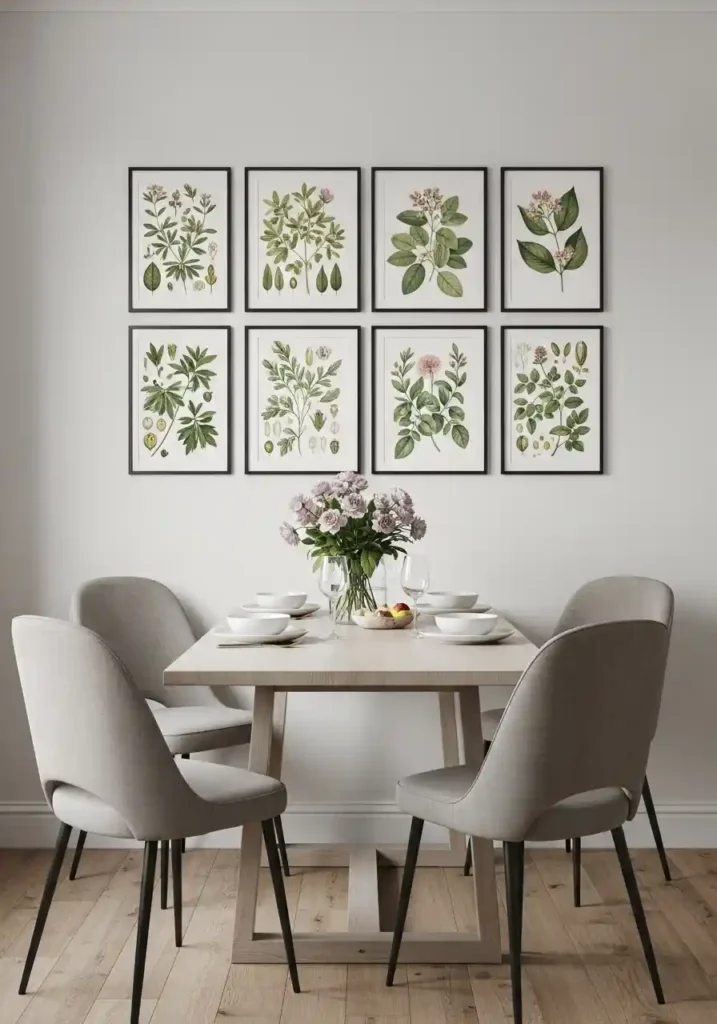 A botanical print gallery wall in a small dining room is the focal point that makes the most natural, most beautiful, and most thematically appropriate connection between the act of eating and the natural world that provides everything we eat — and in a room specifically dedicated to the pleasures of food and shared meals, that connection feels genuinely, meaningfully right in a way that abstract art or purely decorative prints cannot quite replicate. Botanical illustrations have been objects of genuine beauty and genuine scientific reverence since the Renaissance, and their combination of exquisite artistry and natural subject matter makes them the most universally beloved artwork choice for dining room walls across every possible interior design style and personal aesthetic.