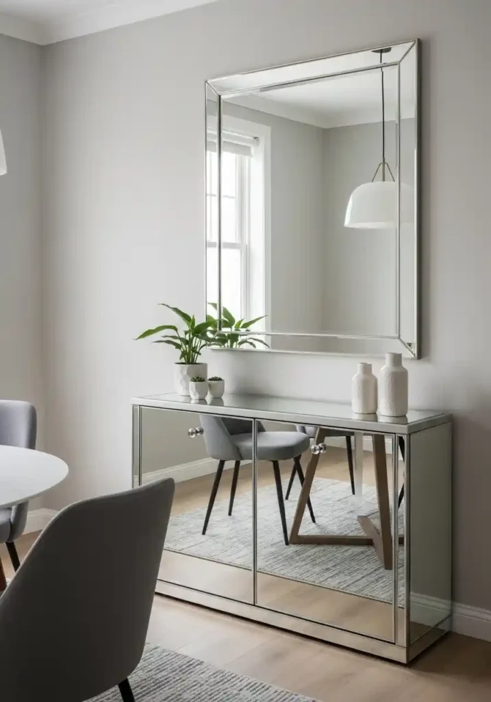 4. A Mirrored Sideboard That Doubles Visual Depth