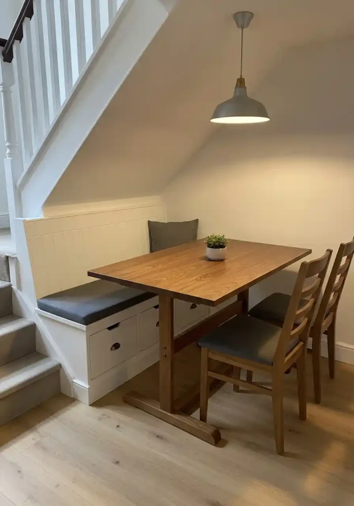 11. Concealed Under-Stair Dining Nook for Awkward Spaces