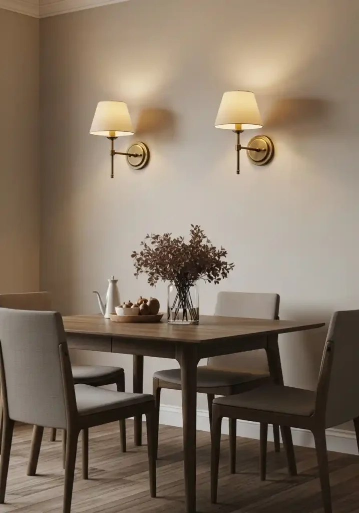 Wall sconces as the primary ambient lighting in a small dining room are the lighting choice that most elegantly and most completely eliminates the floor lamps and table lamps that typically consume both visual and physical floor space in compact dining rooms — because properly specified wall sconces provide warm, generous ambient illumination from wall-mounted positions that consume zero floor space and zero table space, leaving the small dining room’s every inch of floor area and every inch of table surface completely free for the purposes of dining rather than for lamp accommodation. The wall-mounted sconce is the small dining room’s most spatially generous lighting solution.
