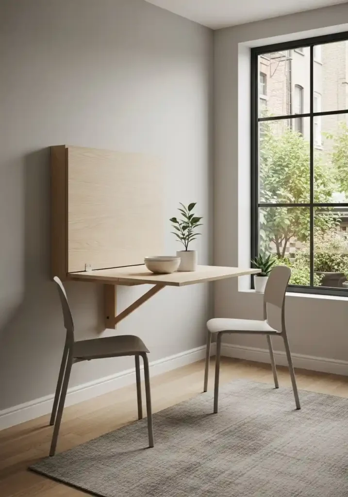 6. The Small Dining Room with a Wall-Mounted Fold-Down Table
