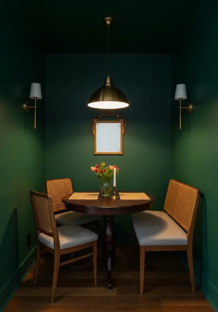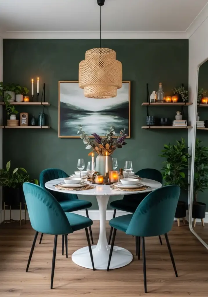 The jewel-box effect — that sensation of being enclosed within a richly finished, beautifully considered space — is most powerfully achieved in small rooms precisely because of their limited size. Deep forest green, midnight navy, rich burgundy, or moody charcoal on all four walls and the ceiling of a small dining room creates a complete envelope of color that makes candlelight and pendant light glow with extraordinary warmth against the dark surfaces. Every face at the table looks beautiful. Every meal feels like an occasion. And every guest who walks into that small, dark, magnificently atmospheric room feels the same thing: that this is the most beautiful dining room they’ve ever sat in.