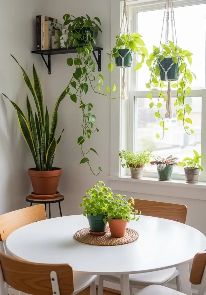 Plants in a small dining room do something for the space that no paint color, no furniture choice, and no lighting scheme can replicate — they make the room feel genuinely alive, genuinely connected to the natural world, and genuinely more interesting to be in for extended periods in a way that purely decorative objects, however beautiful, simply cannot achieve. A dining room with plants is a dining room where the experience of eating is subtly but meaningfully enriched by the presence of living things — where the oxygen is genuinely better, where the visual environment includes the organic movement and growth of real nature, and where the overall atmosphere feels more generous and more nourishing than any purely manufactured interior environment.
