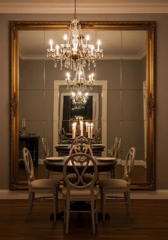 The frame of your dining room mirror is a design decision of real consequence in a small room where every element is highly visible and highly impactful. An ornate gilded baroque frame adds glamour and historical grandeur that makes a small dining room feel like a private salon of extraordinary elegance. A thick, dark wood frame brings organic weight and rustic sophistication. A slim, minimal frame in black or brass makes a contemporary statement with quiet confidence. In every case, go larger than feels immediately comfortable — a mirror that is slightly too large for the wall creates a far more powerful spatial impact than one that is cautiously sized, and in a small dining room, that impact is the entire point of the exercise.