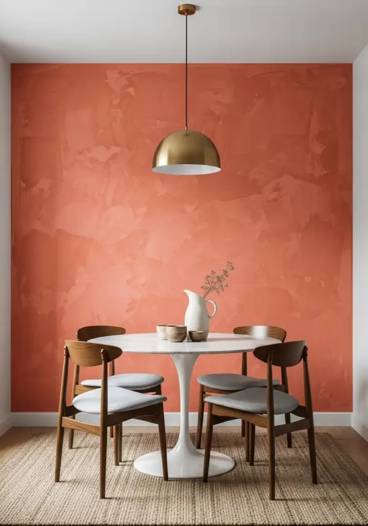 The transformative quality of limewash in particular has made it one of the most beloved and most widely adopted wall finishes in contemporary interior design — and in a small dining room context, its combination of warm color, organic texture, and a slightly matte reflectivity that creates depth without glare makes it the ideal textured finish choice. Applied to the most prominent wall of a small dining room — ideally the wall directly opposite the window, where it receives the most changing natural light throughout the day — limewash creates a backdrop of such organic beauty and such quietly compelling visual complexity that a simple dining table and four good chairs in front of it becomes a dining room composition of genuine elegance and warmth.