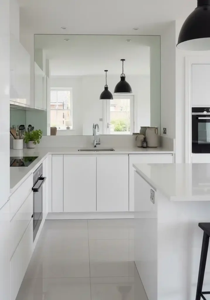 Light-reflective surfaces in a small kitchen are the spatial transformation strategy that delivers the most significant and the most convincingly perceived improvement in the kitchen’s apparent size without any structural change, any layout modification, or any increase in the kitchen’s actual physical dimensions. Mirror backsplashes, high-gloss cabinet fronts, polished countertops, and semi-polished floor tiles each individually contribute to the kitchen’s perceived spaciousness through their specific light-reflecting properties, and their combined presence in a single small kitchen creates a cumulative spatial expansion effect of such complete and convincing magnitude that the kitchen appears genuinely, substantially larger than it actually is.