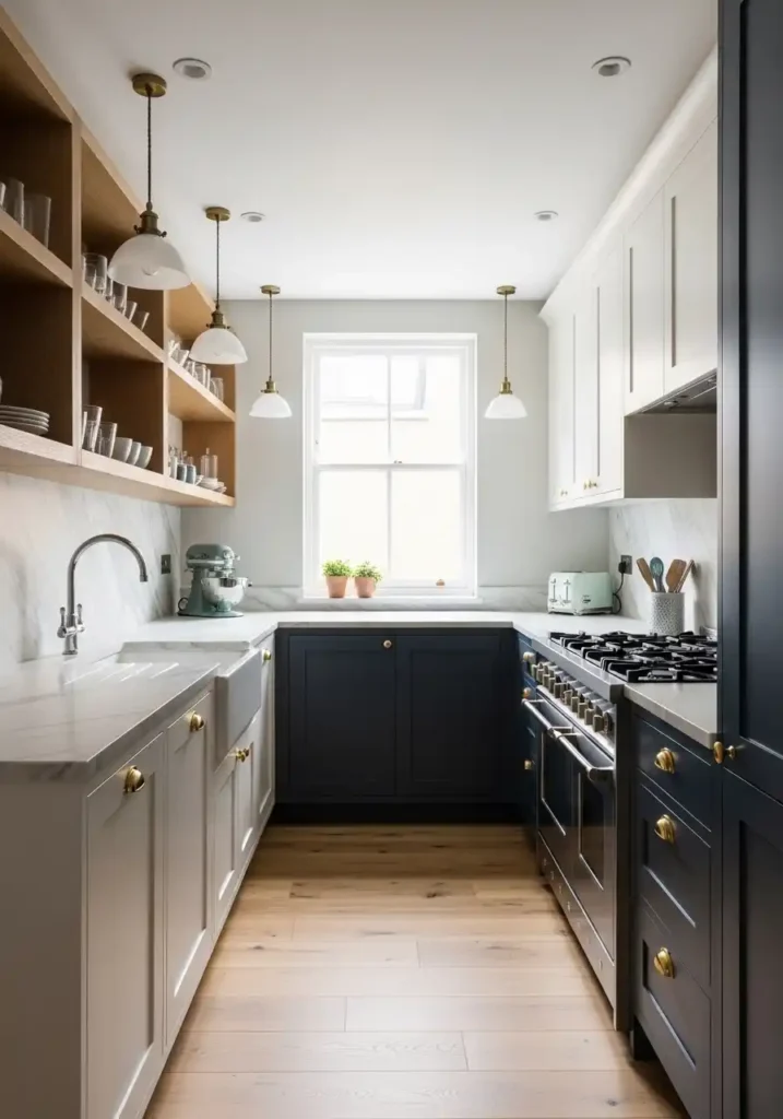 10. The Small Kitchen with Two-Tone Cabinets for Visual Depth