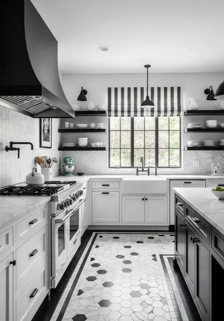 4. The Classic Black and White Kitchen with Graphic Timelessness