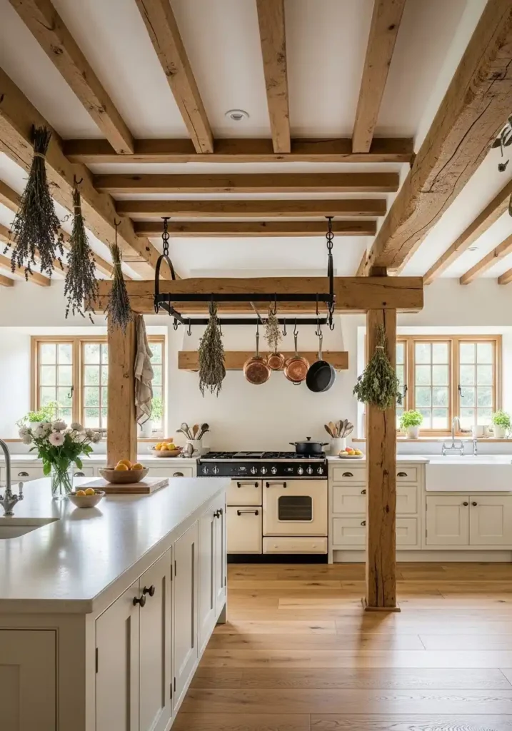 17. The Kitchen with Exposed Wooden Ceiling Beams That Endure