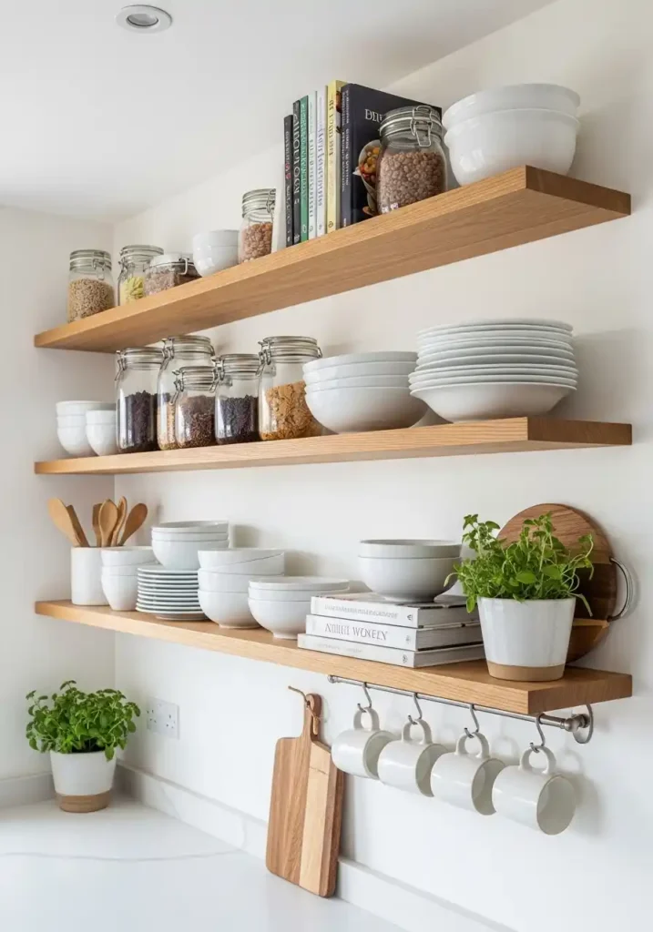 Open kitchen shelving has been creating some of the most beautiful, the most personal, and the most genuinely warm kitchen environments in residential design for decades — not as a fashionable trend that periodically rises and falls in popularity but as a permanent, completely reliable design decision that consistently produces kitchens of greater visual warmth, greater personal expression, and greater genuine domestic character than the same kitchens with closed upper cabinets. The open shelf is timeless because it reflects the most fundamental principle of honest, beautiful domestic design: that the beautiful objects of daily use are more beautiful displayed than hidden, and that a kitchen filled with genuinely lovely ceramics and genuinely used utensils is more beautiful than a kitchen where those same objects are concealed.